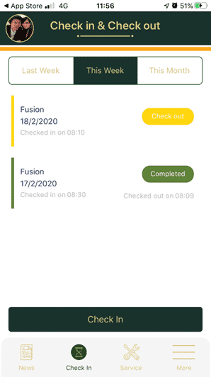 – The yellow status is Check In and wait for the employee.