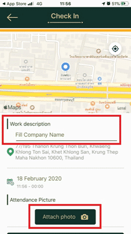 2. At Work description, in the Fill Company Name field, enter the company name. It can be a company that employees work or it can be a client company that we go on-site.