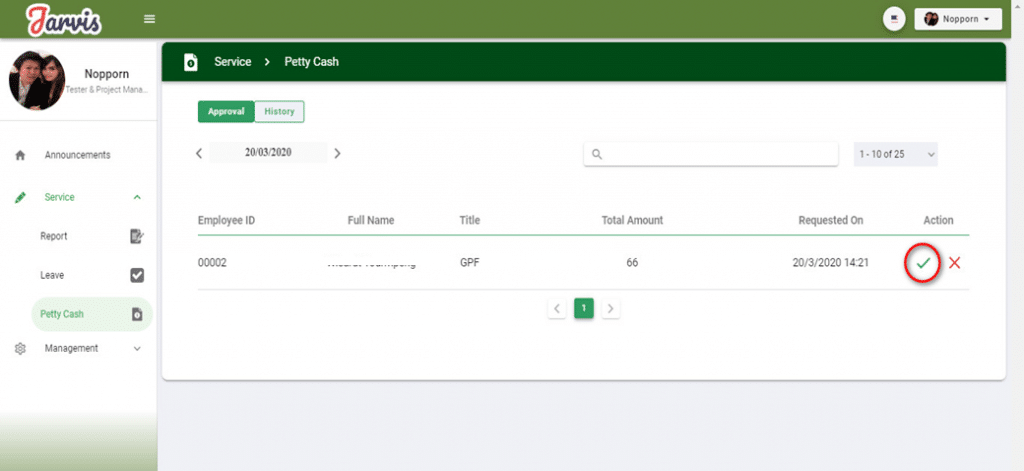 – Once approved, the item with its status will be sent to the History menu, the approved date will be seen along with the approved item