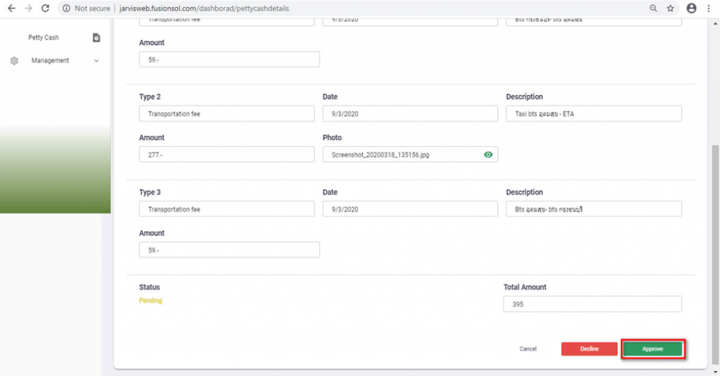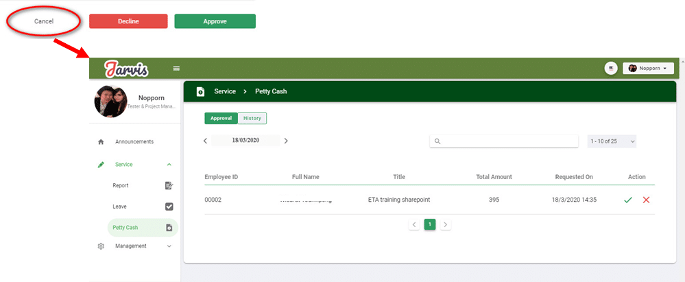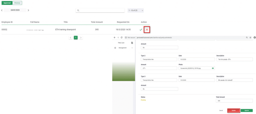 ■ HR or Admin can Decline requesting to withdraw money of employees in two ways, the same as Approve, including procedures and methods as well