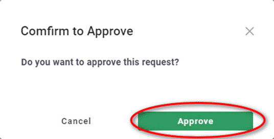 – There will be a Popup, press the Approve and OK button. Finish Item with status will be sent to the History menu as well as Approve type 1