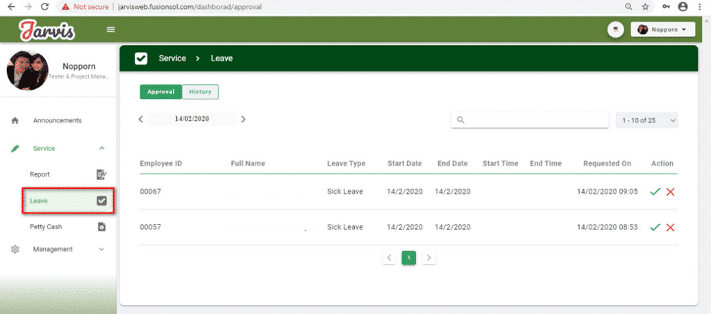 On Jarviz website, go to the Service menu and click on Leave sub menu which is a feature for leave management: