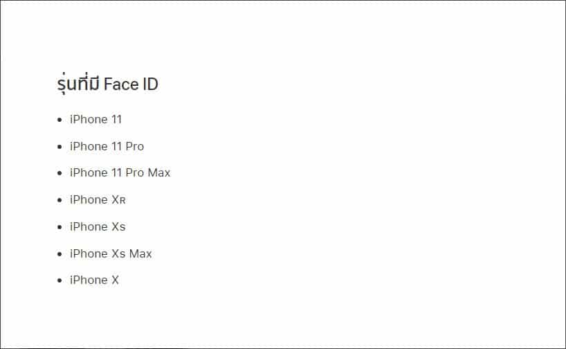 สำหรับ iPhone ที่รองรับ Face-ID มีดังนี้