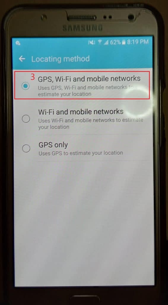 - ความถูกต้องสูง ส่วนมากแล้ว เมนูนี้จะถูกเลือกเป็นค่าเริ่มต้นอยู่แล้ว จะใช้ GPS, Wi-Fi และ เครือข่ายมือถือเพื่อประเมินตำแหน่ง ให้แม่นยำที่สุดของเรา