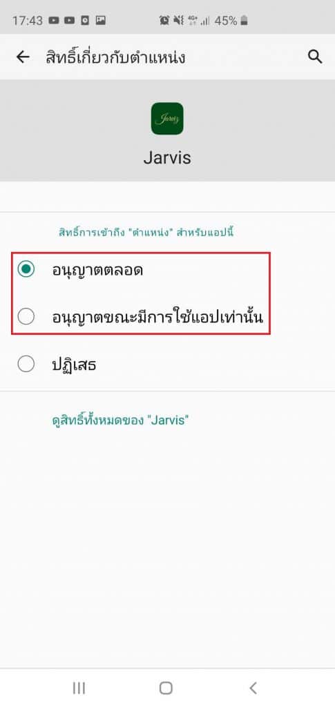1.วิธีการตรวจสอบตำแหน่ง GPS และ สิทธิ์การเข้าถึงแอพพลิเคชัน Jarviz