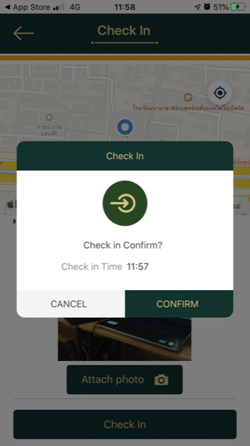 1.6 จากนั้น เมื่อเปิดแอพ Jarviz ก็จะเห็นแผนที่ และ สามารถ Check In ได้ตามปกติ