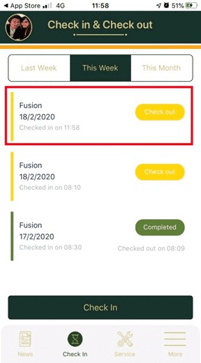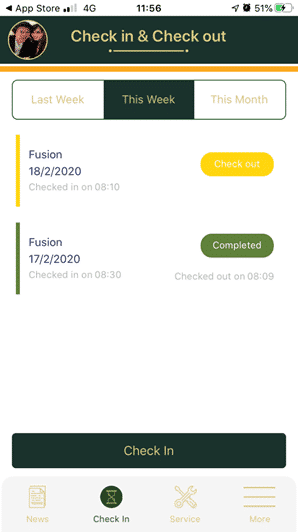 注意-黄色状态表示员工已签入并等待员工签出。 -绿色状态为员工已签出。这是员工出入境的完整过程
