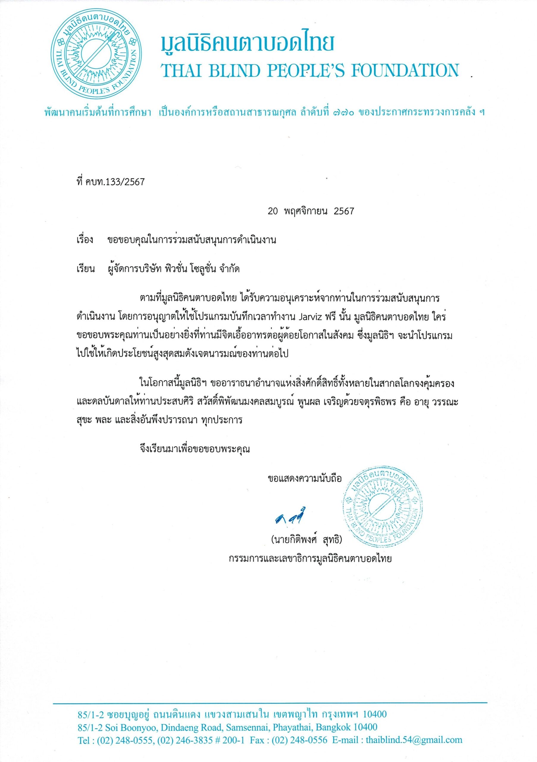 ทางบริษัท ฟิวชั่น โซลูชั่น จำกัด ยินดีและปราบปลื้มใจที่ได้เป็นส่วนหนึ่งในการช่วยเหลือมูลนิธิคนตาบอด