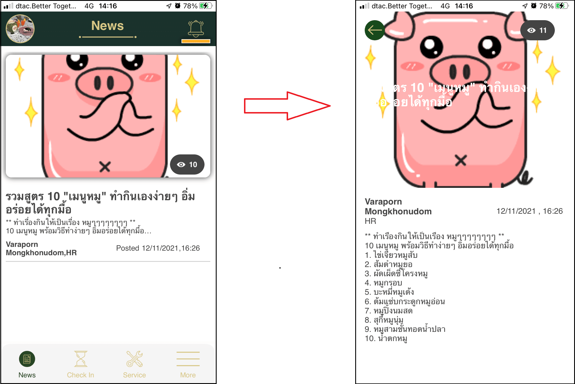 5. หลังจากกดปุ่ม Post แล้ว จะมี Popup แจ้งว่าประกาศข่าวเสร็จเรียบร้อยให้คลิกปุ่ม OK ข่าวประกาศก็จะปรากฏใน Web Jarviz เป็นรูปแบบ Mobile View Mode และ เมนู News ใน Mobile