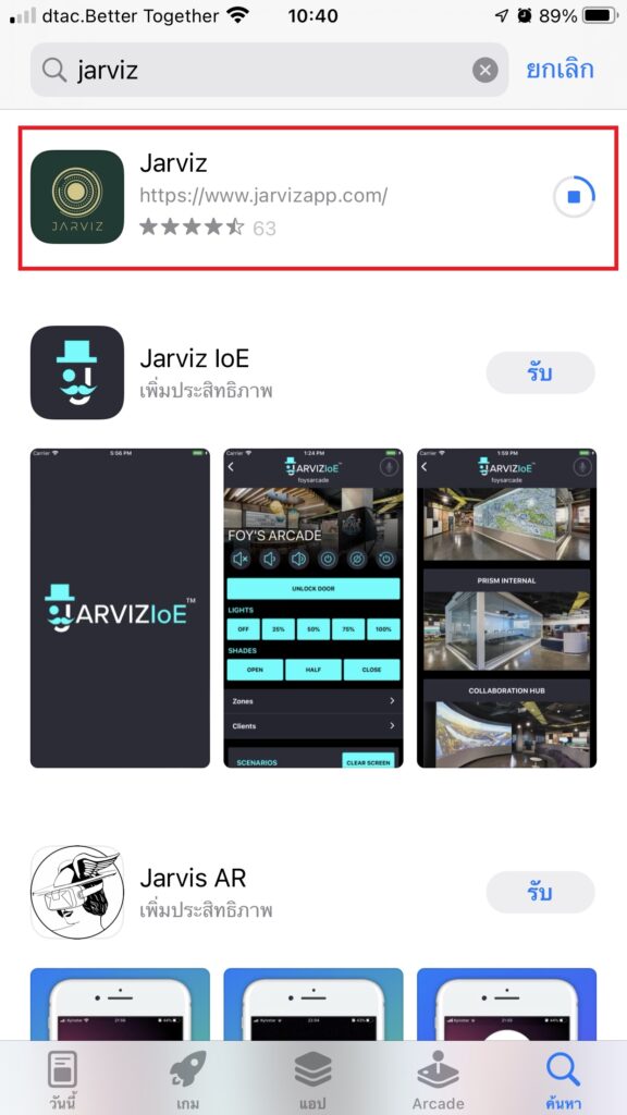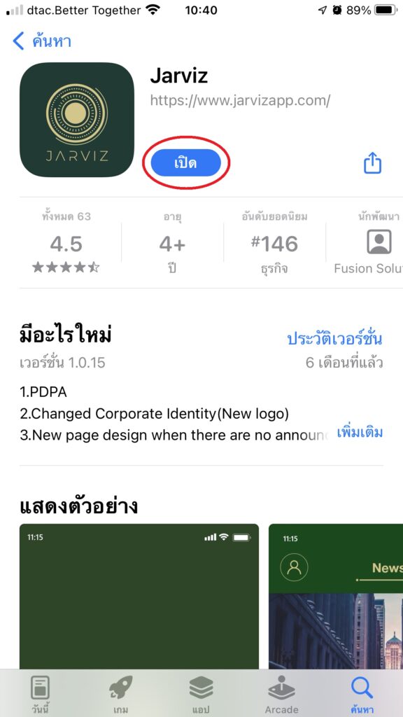4. เมื่อ Download เรียบร้อยแล้ว ให้แตะที่ปุ่ม เปิด เพื่อใช้งาน App Jarviz