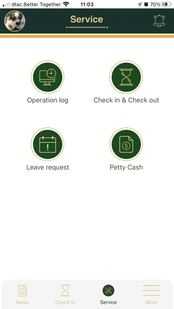 เมนู Service บน Mobile จะประกอบด้วย Feature ต่างๆ ดังนี้