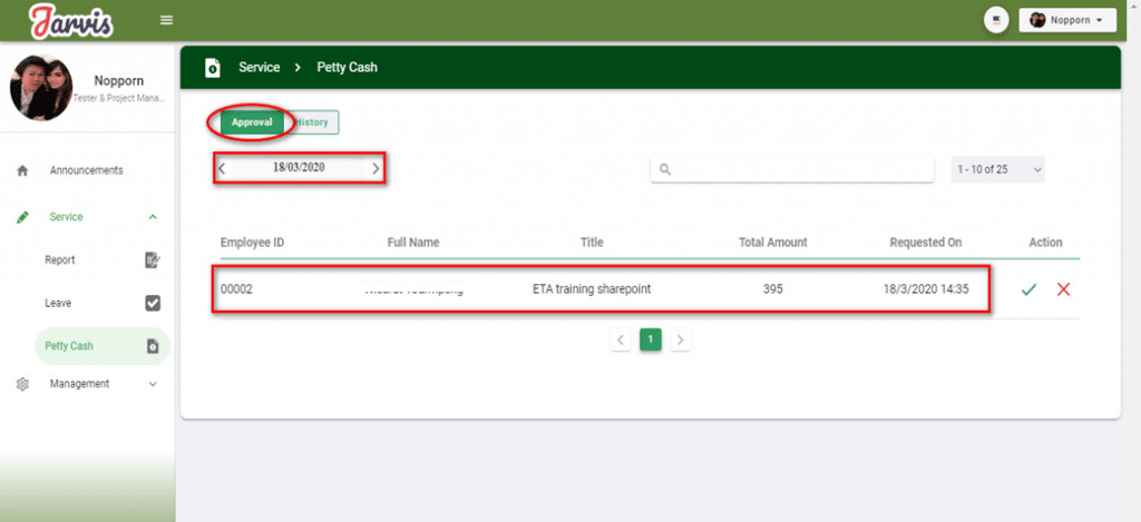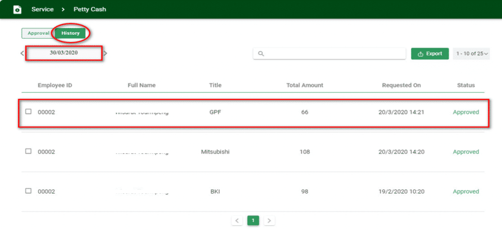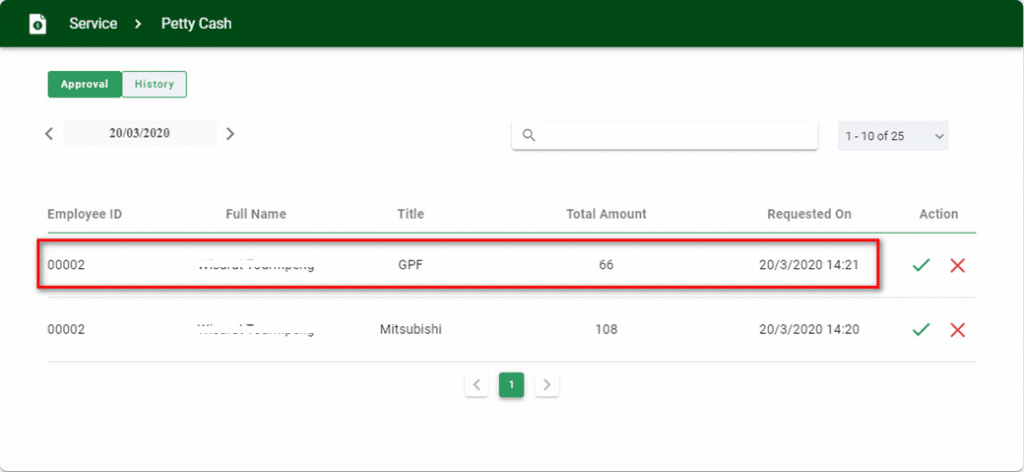 – เมื่ออนุมัติเรียบร้อยแล้ว Item พร้อมสถานะจะถูกส่งไปที่เมนู History แล้วจะเห็นวันที่ที่ได้อนุมัติ พร้อมกับ Item ที่อนุมัติไปด้วย
