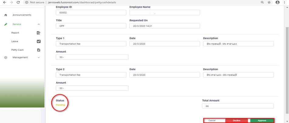 ■ HR หรือ Admin สามารถ Decline การขอเบิกเงินของพนักงาน ทำได้ 2 แบบ เช่นเดียวกับการ Approve รวมถึงขั้นตอนและวิธีการด้วย