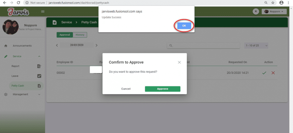 – จะมี Popup ขึ้นมาให้กดปุ่ม Approve และ OK เสร็จแล้ว Item พร้อมสถานะ ก็จะถูกส่งไปที่เมนู History เช่นเดียวกับการ Approve แบบที่ 1