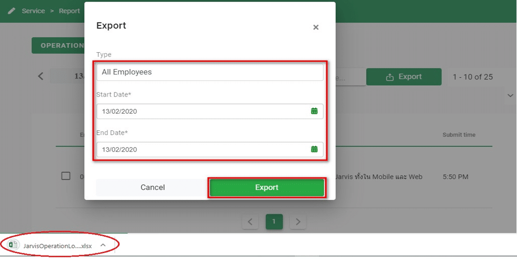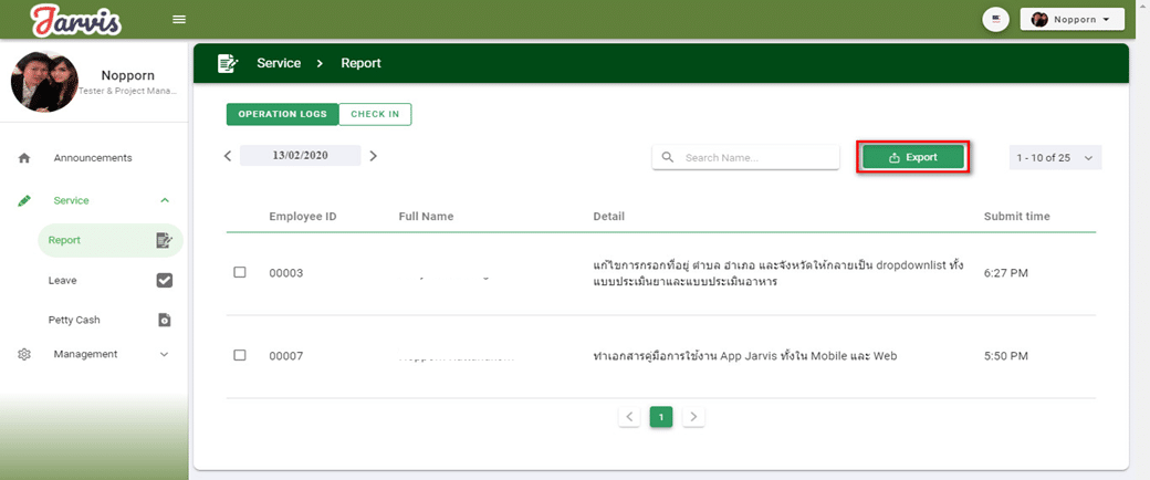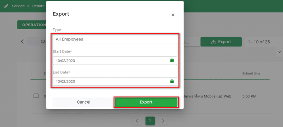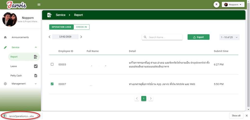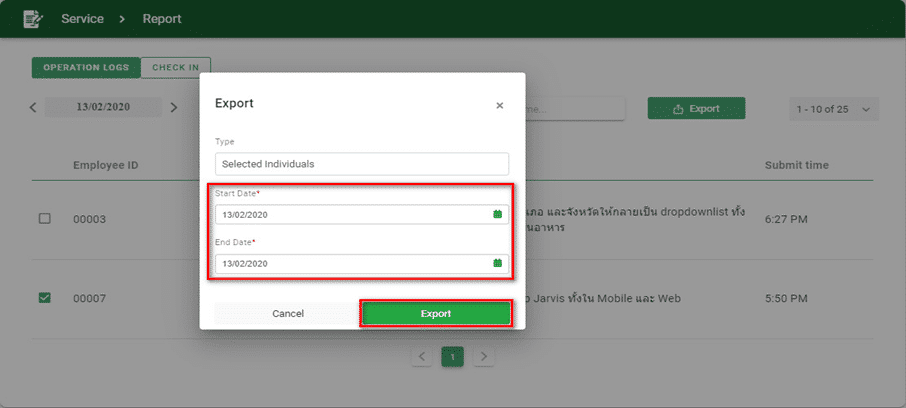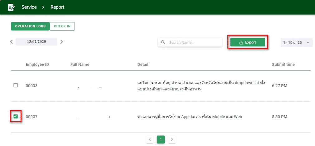 Tick ​​the check mark In front of the name of the employee who wants to export the information and click the button