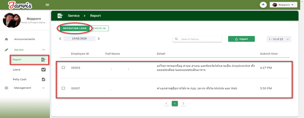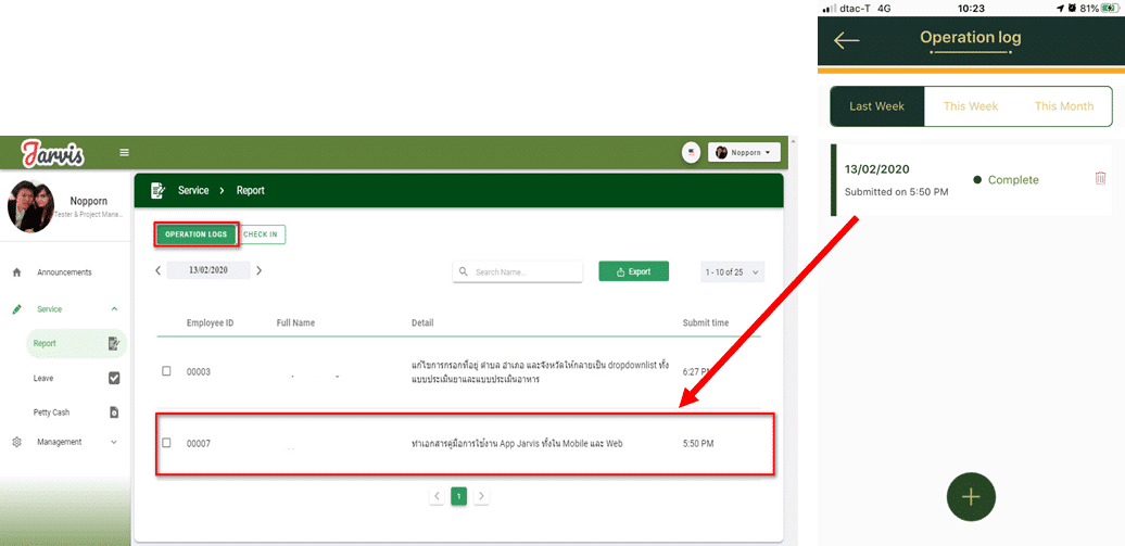 ■ Operation Log will fill in the details of the employee’s work on Mobile and press the Submit button. The system will send the matter to the website so that the person who has the right to check the information can see the item of that employee