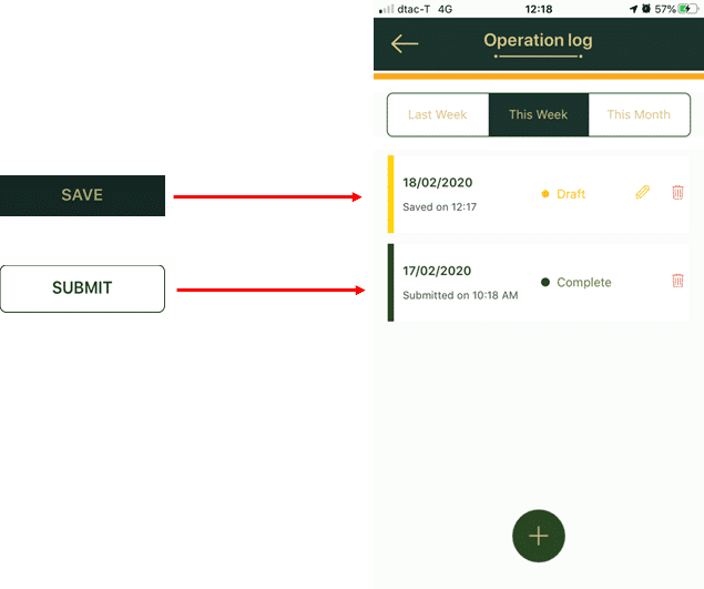 4. After clicking Submit or Save button, at the first page of Operation log (This Week) will display the status as in the picture.