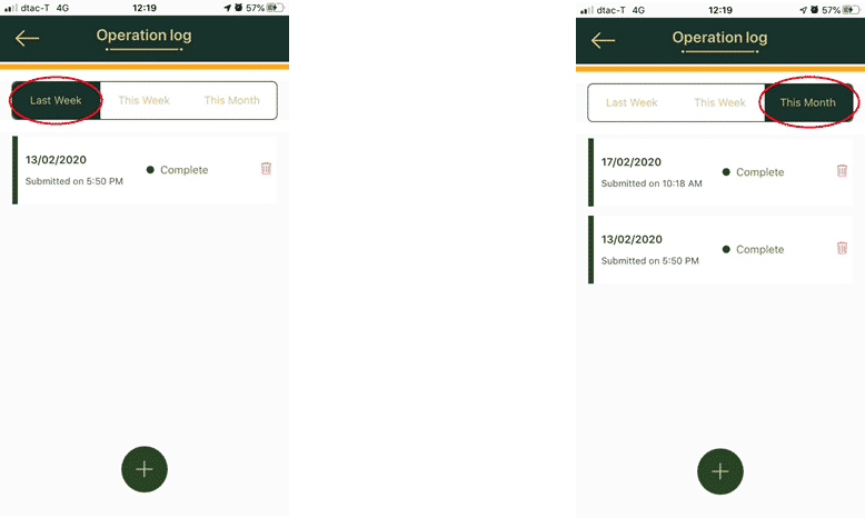 – Last Week will be the Operation log of the last week.- This Month will be the Operation log of this month.