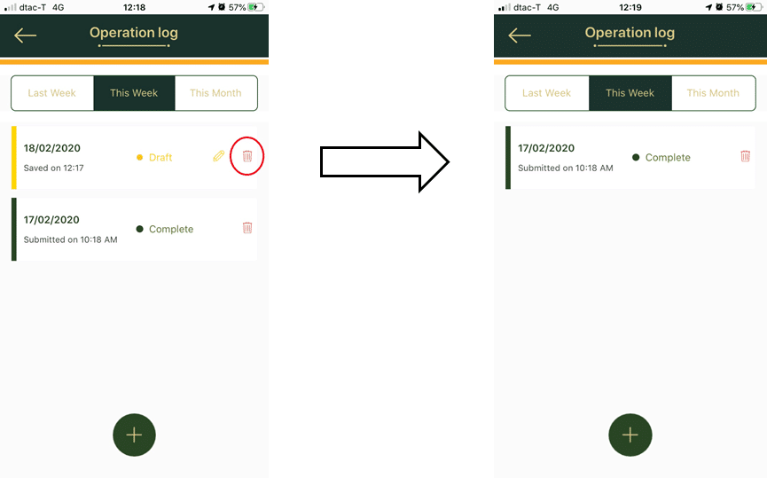 Operation Log menu on Mobile