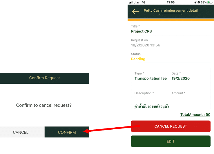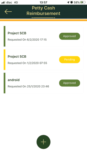 2. It will return to the Petty Cash Reimbursement page and the deleted item will disappear as in the picture