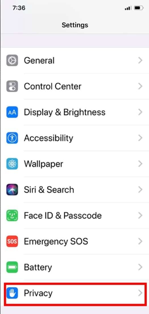 2. Privacy ကို ရွေးပါ။