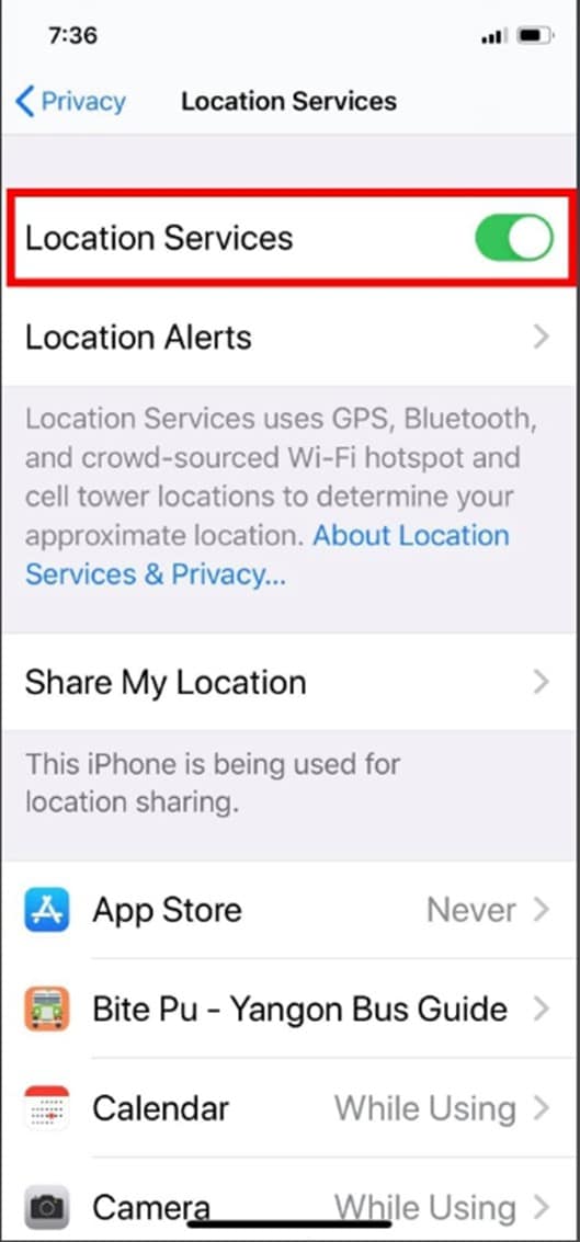 5. Location Services ကို ပြန်လည် ဖွင့်ပေးရပါမည်။