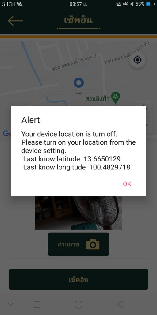 1. ในมือถือ ที่หน้า Check In ของแอพ Jarviz หลังจาก กรอกชื่อบริษัท และ ถ่ายรูป เรียบร้อยแล้ว กดปุ่ม Check In จะปรากฏ Popup ดังรูป