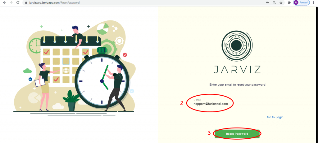 ขั้นตอนทั้งใน Mobile และ Website จะทำเหมือนกันคือ ให้ไปที่หน้า Login. แล้วเลือก Forgot Password. จากนั้นให้ใส่ User ID กับ Email แล้วกดปุ่ม Reset Password. รอสักครู่ระบบ Jarviz จะส่ง Email ไปยัง Email ที่คุณกรอก. ใน Email จะเห็น Password ใหม่. คุณสามารถนำ Password ใหม่นี้มา Login ได้ และ จะสามารถเข้าสู่ระบบได้ปกติ
