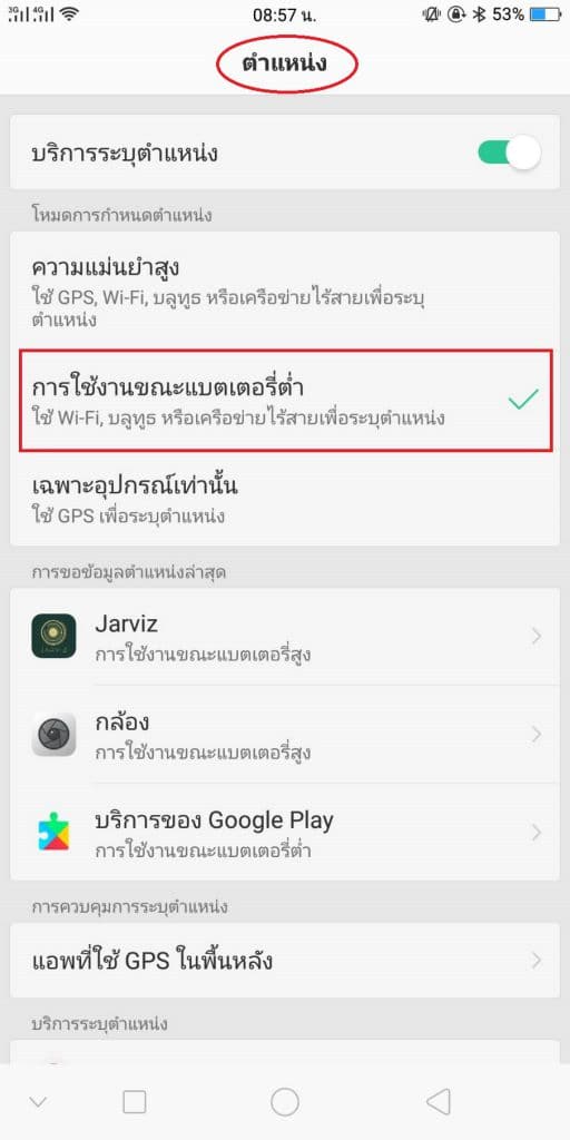 2. ต้องเข้าไปตรวจสอบที่ตำแหน่งพิกัดของมือถือว่าเปิดเป็น Mode อะไร