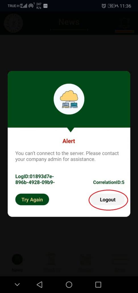 2. Then a Popup will be shown to Try again or logout, select logout.